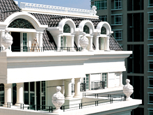 引進外部智力,招賢納才,高薪聘請國內資深歐 式建筑設計專家擔任企業技術顧問,并聘用國內 優秀設計師組建設計團體。在建筑設計中,設計 師把握仿真石能任意造型的特點,將建筑的功能 化、藝術化、人格化和個性化得以充分展現,體 現了現代建筑高貴、典雅的風格,讓觀者領略了 不同凡響的品味和悠遠的歐洲文化。
